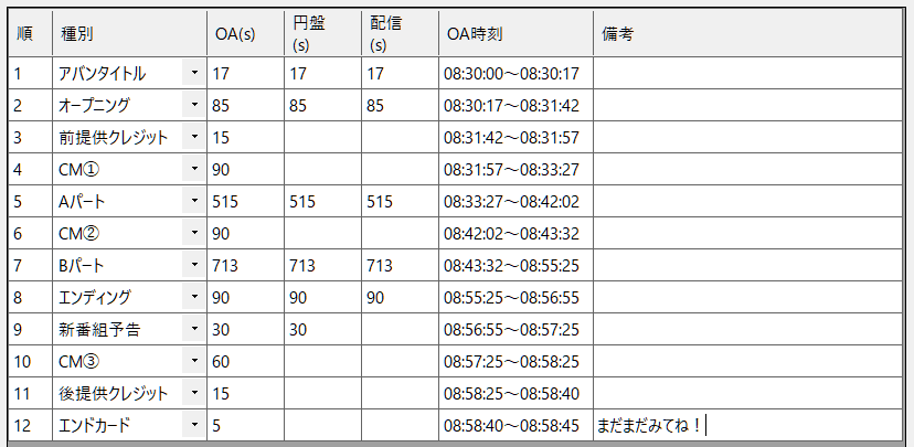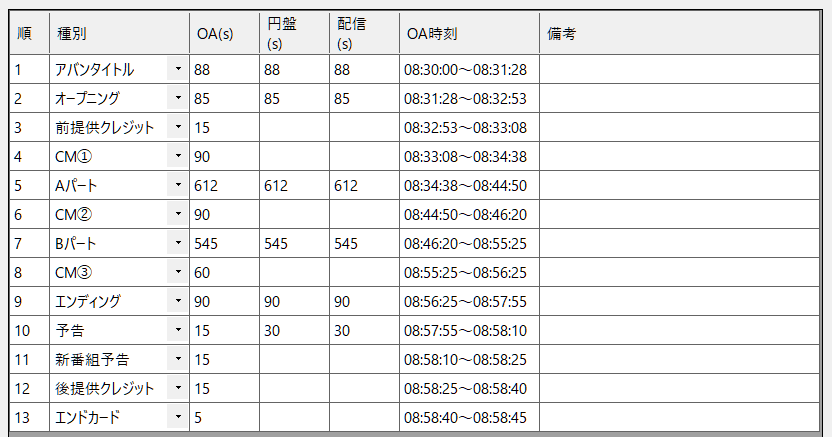 こちらもCM③が予告後に移動し、Bパートから直接EDに繋がる美しい流れになっています。